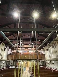 During this work, the opportunity was also taken to make repairs to other areas that already had defective plasterwork. One significant consequence of the roof lead theft was the damage done to the pipe organ, which was already in need of a major overhaul. Expert opinion confirmed that it was beyond economic repair, eventually leading to the purchase of a high-quality electronic organ as a replacement.